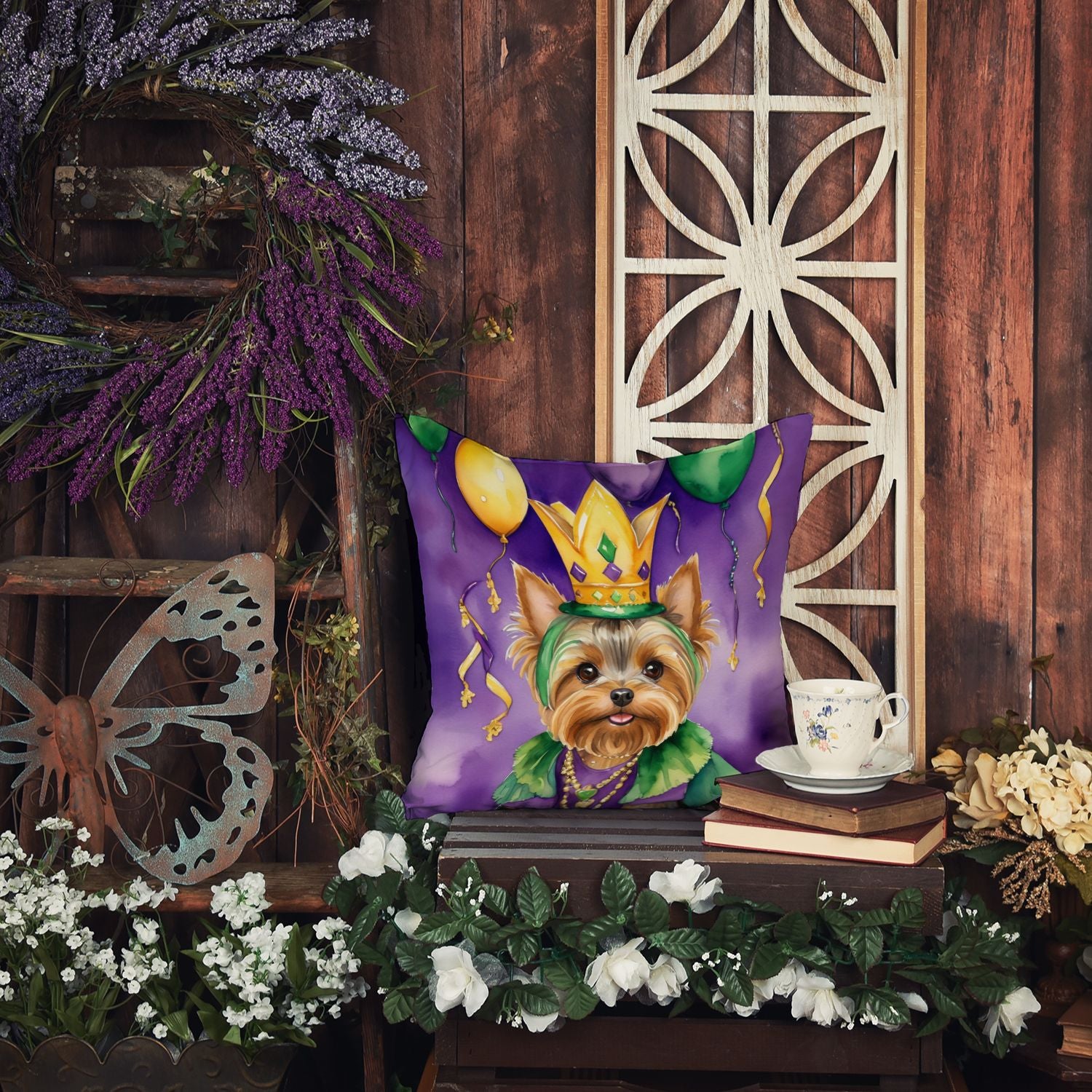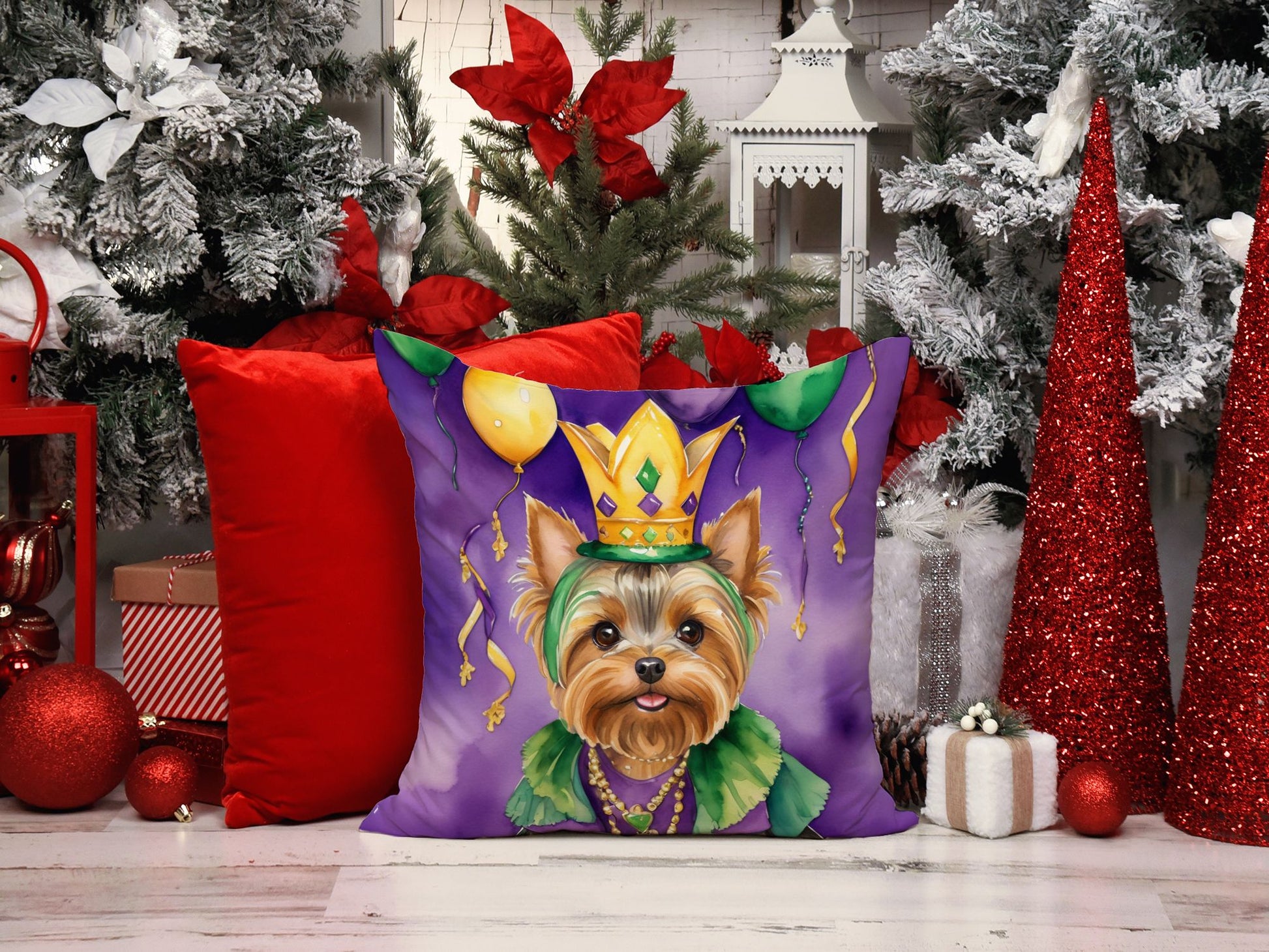 Yorkshire Terrier King of Mardi Gras Throw Pillow Machine Washable, Indoor Outdoor Decorative Pillow for Couch, Bed or Patio, 14Hx14W
