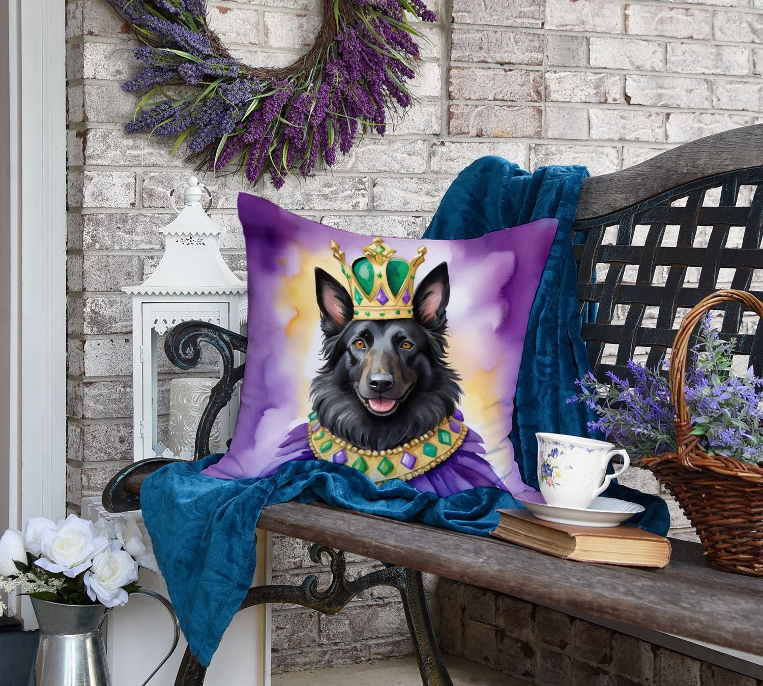 Throw Pillow featuring breed specific Belgian Sheepdog artwork. Celebrate Mardi Gras with this Mardi Gras Pillow. Revitalize your outdoor or indoor living space with Caroline's Treasures 18x18 Fabric Decorative Pillow. With a generously sized dimension of approximately 18 inches by 18 inches, this pillow makes a comfortable and aesthetic addition to any seating area. Made from a unique, water-resistant material developed by Caroline's Treasures, the pillow sham is 100% polyester fabric that's durable and ready to weather any condition. Its vibrant, full-color artwork will not fade over time as it is dyed with color-fast dyes. Whether you place it on your patio furniture, porch, veranda, or indoor couch, its soft canvas fabric ensures a cozy experience. The pillow is handcrafted in the United States, featuring a sham created from three pieces of fabric and a polyester insert for enduring shape and overstuffed comfort. Despite being robustly built to endure the outdoors, it is as soft and snug as your favorite indoor cushions. Please note, as all our pillows are handmade, sizes may vary slightly, adding to the charm of this unique decorative item.