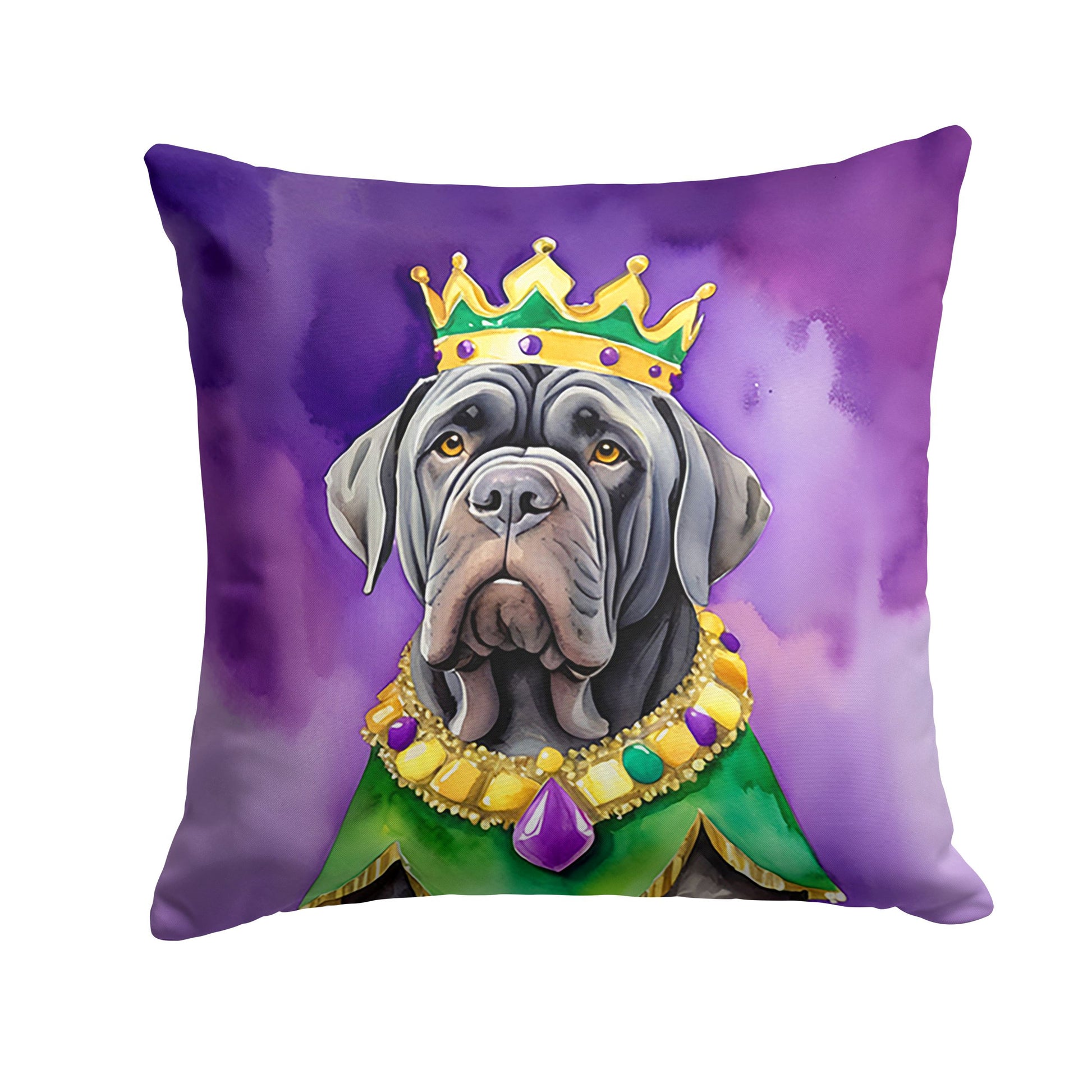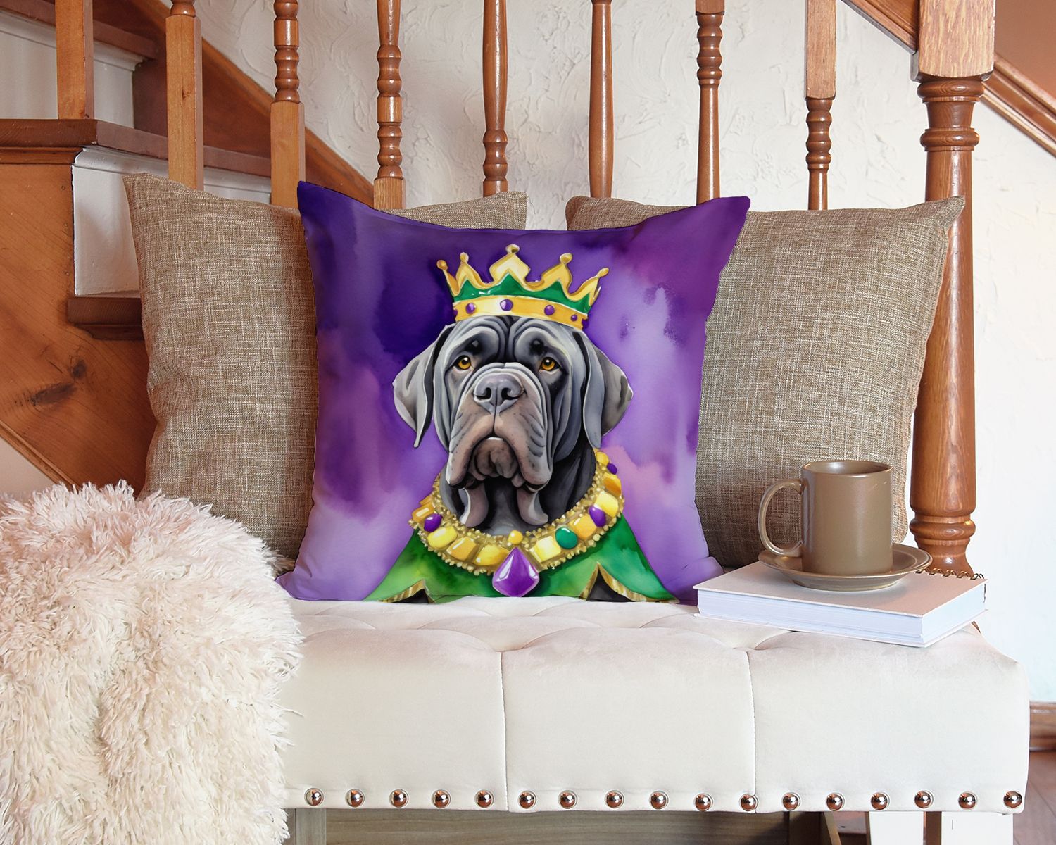 Neapolitan Mastiff King of Mardi Gras Throw Pillow Machine Washable, Indoor Outdoor Decorative Pillow for Couch, Bed or Patio, 14Hx14W