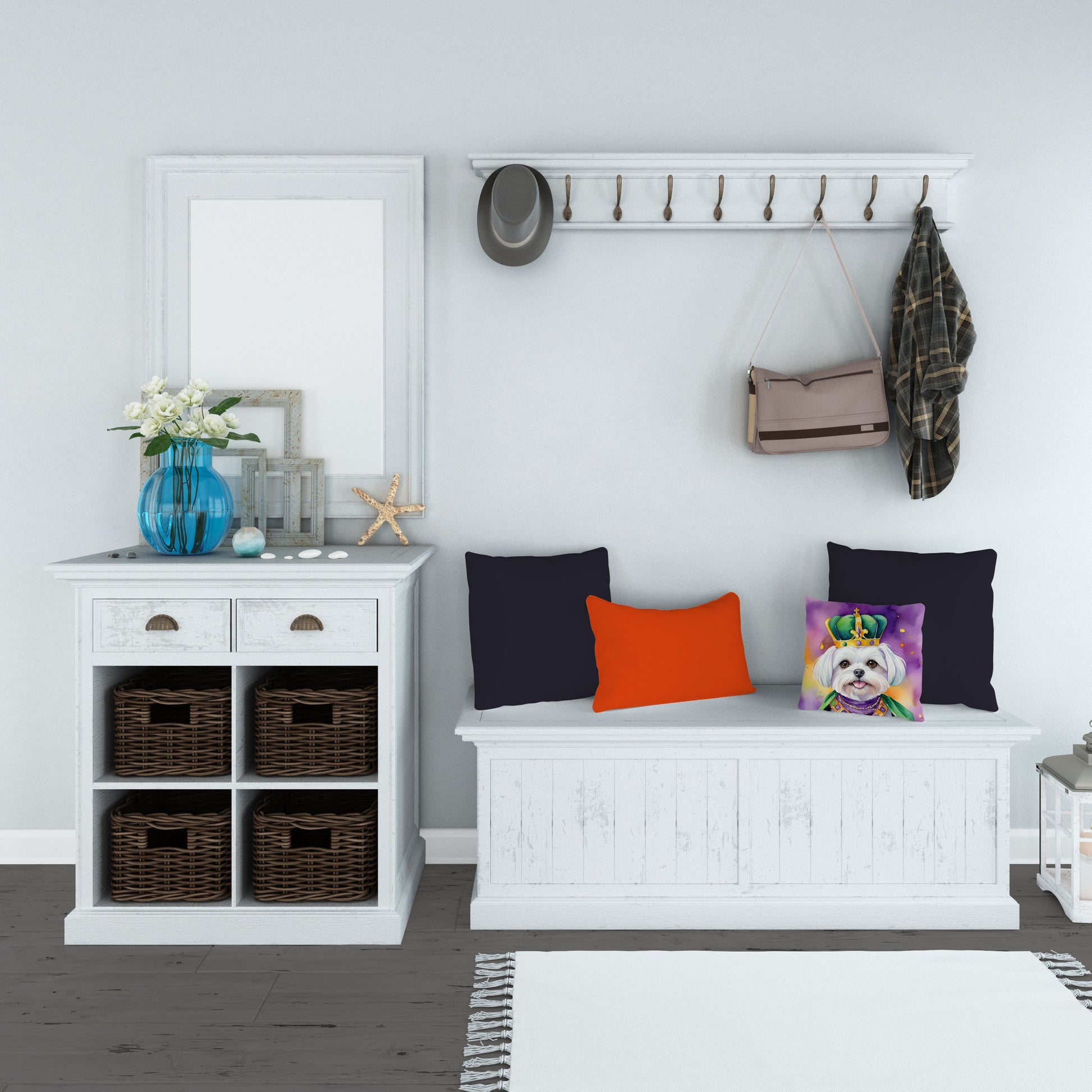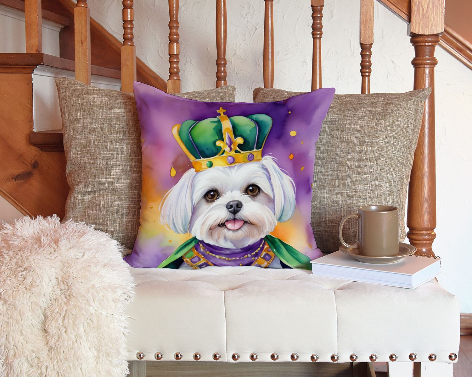 Maltese King of Mardi Gras Throw Pillow Machine Washable, Indoor Outdoor Decorative Pillow for Couch, Bed or Patio, 14Hx14W
