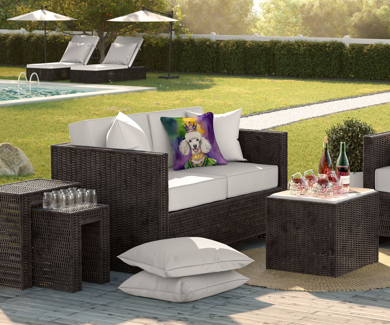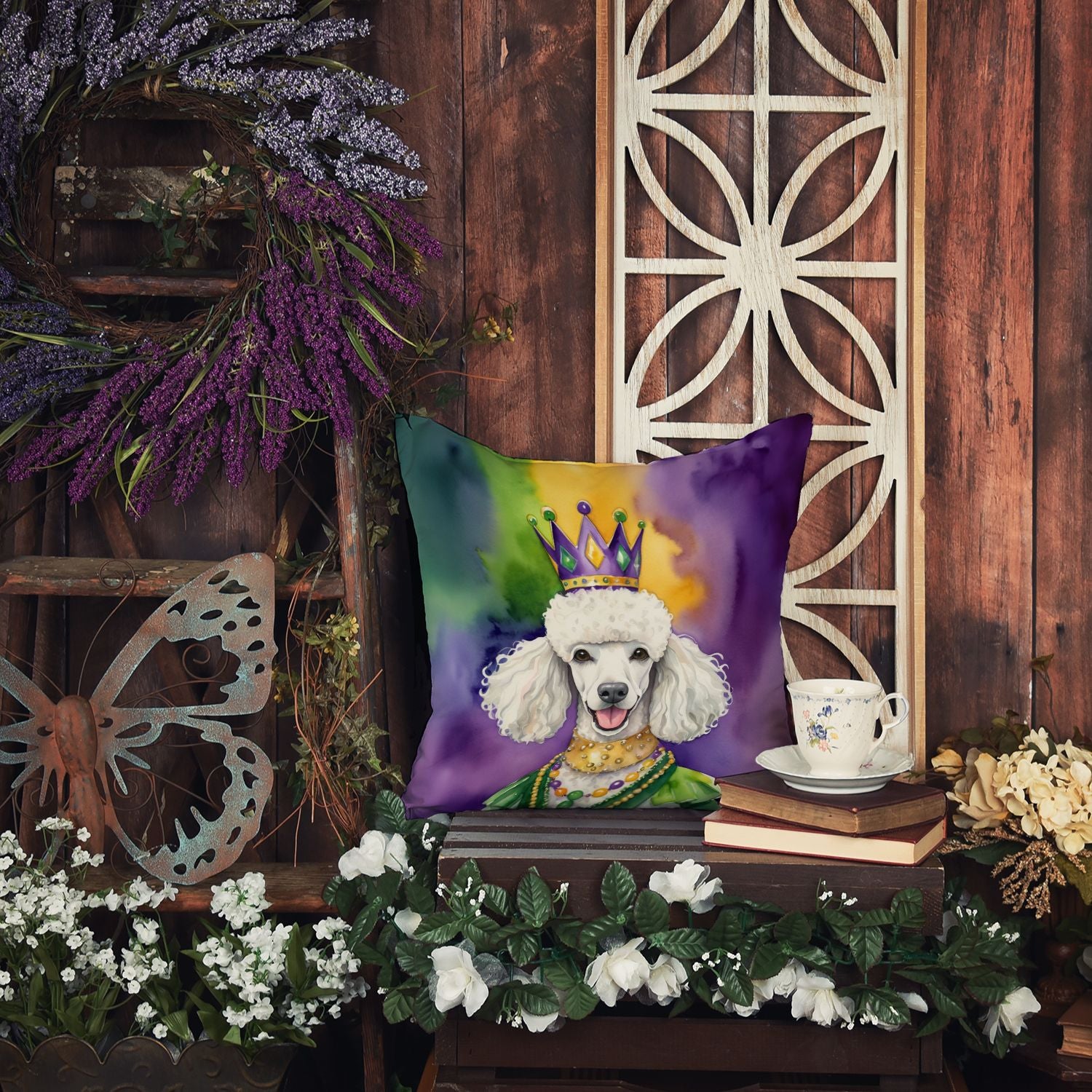 White Poodle King of Mardi Gras Throw Pillow Machine Washable, Indoor Outdoor Decorative Pillow for Couch, Bed or Patio, 18Hx18W