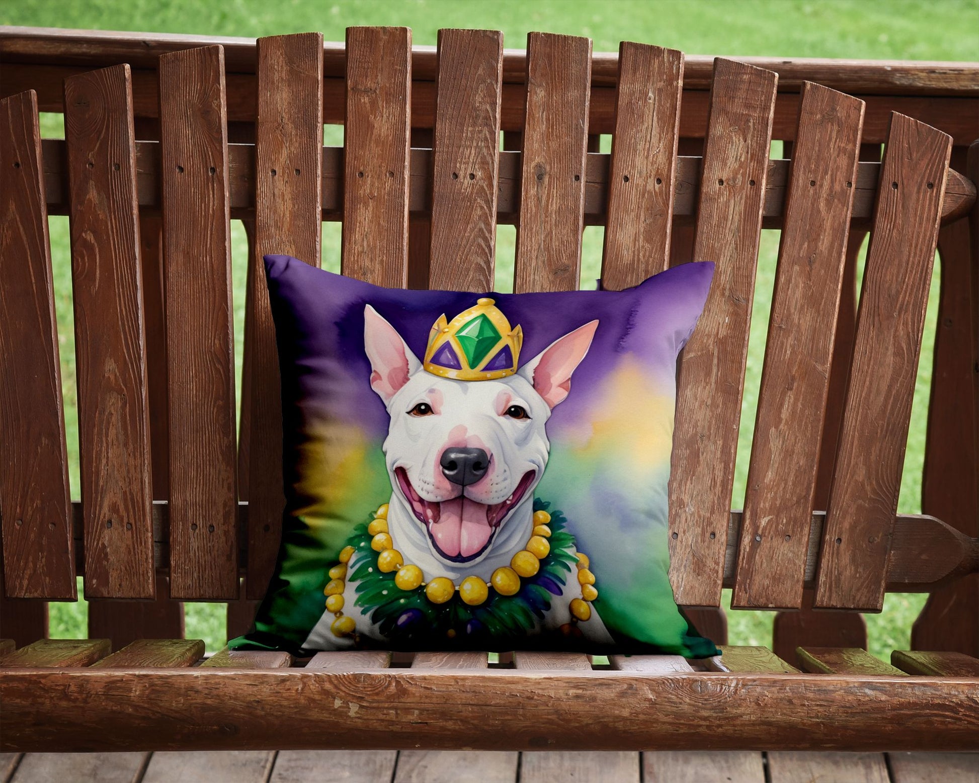 English Bull Terrier King of Mardi Gras Throw Pillow Machine Washable, Indoor Outdoor Decorative Pillow for Couch, Bed or Patio, 14Hx14W