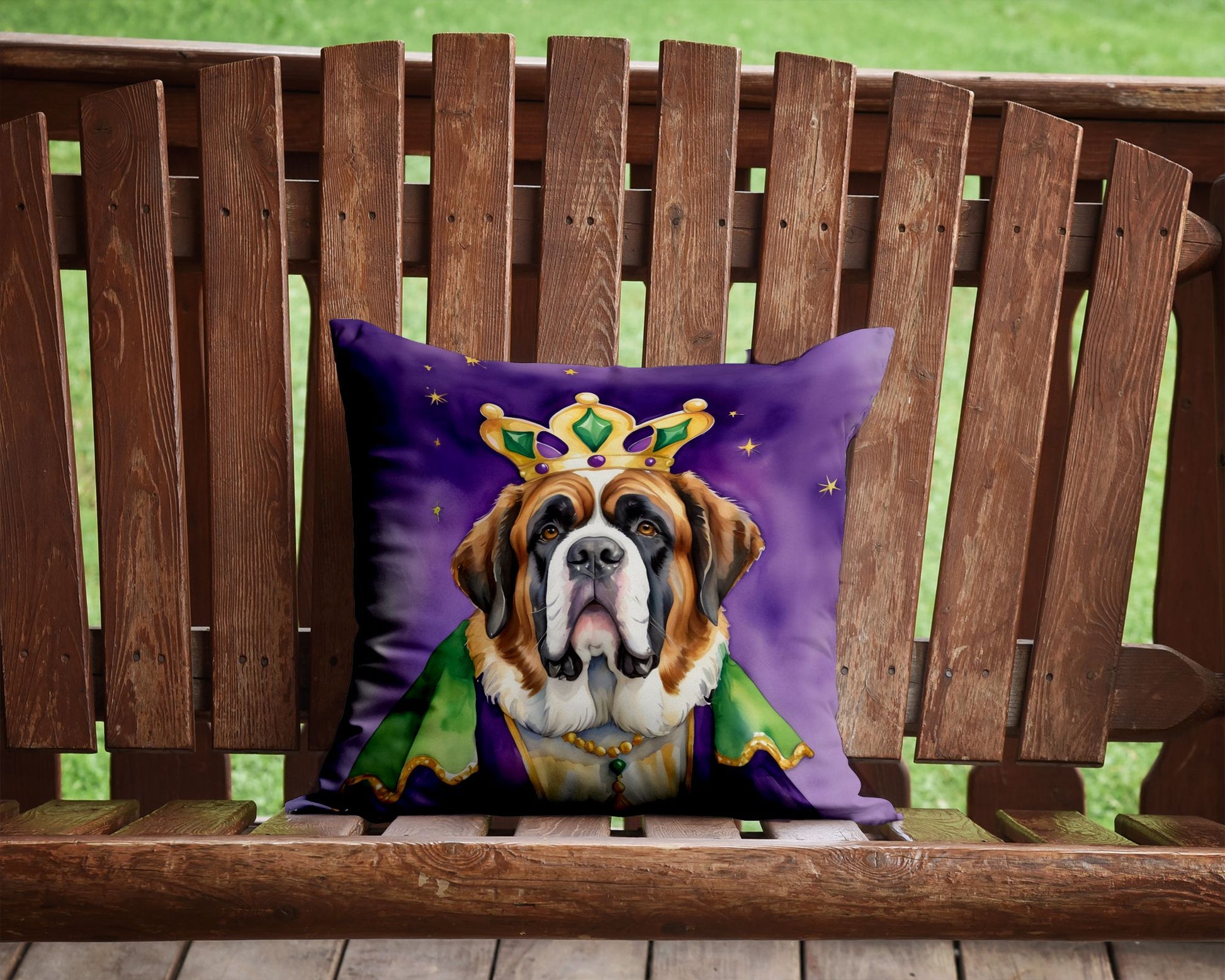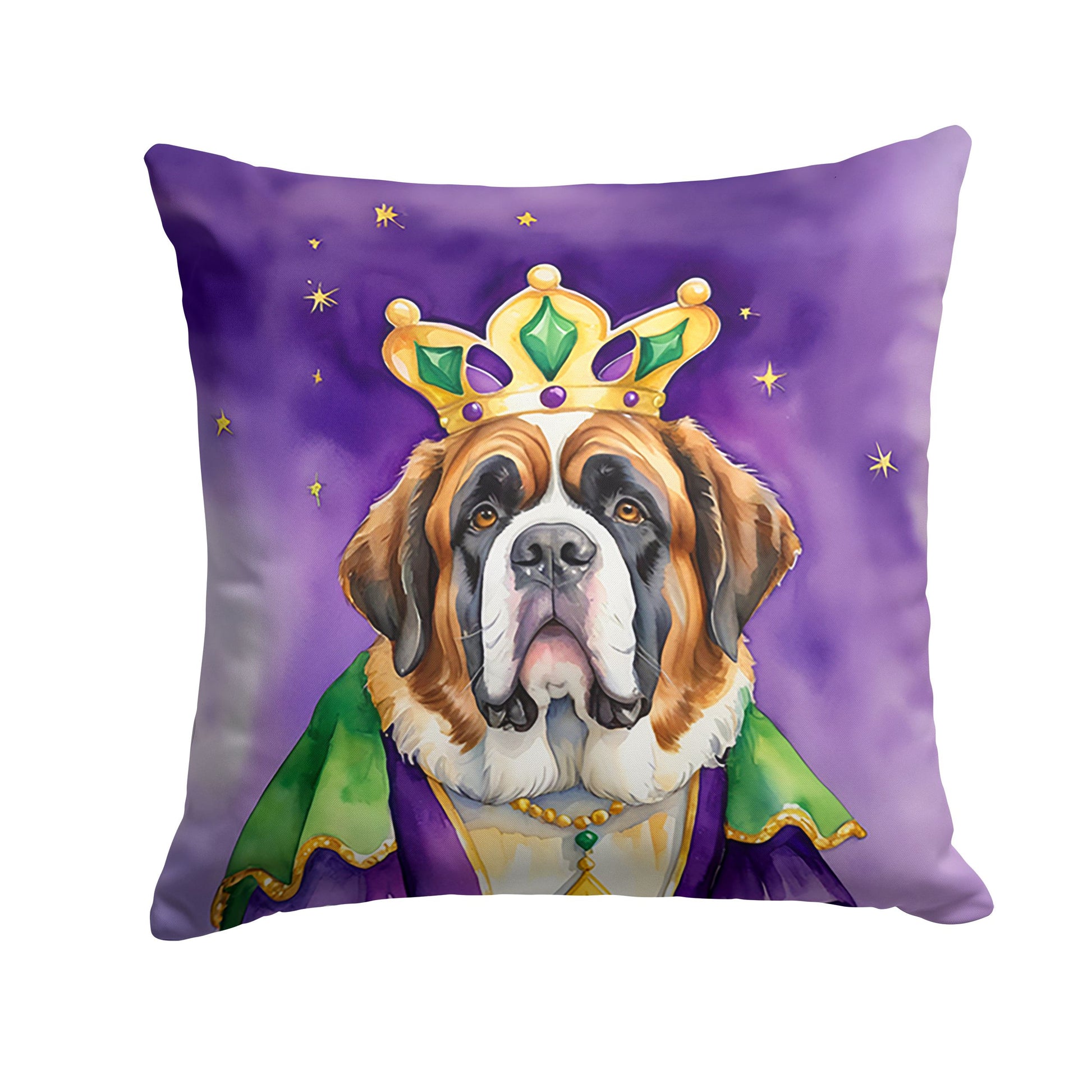 Saint Bernard King of Mardi Gras Throw Pillow Machine Washable, Indoor Outdoor Decorative Pillow for Couch, Bed or Patio, 14Hx14W