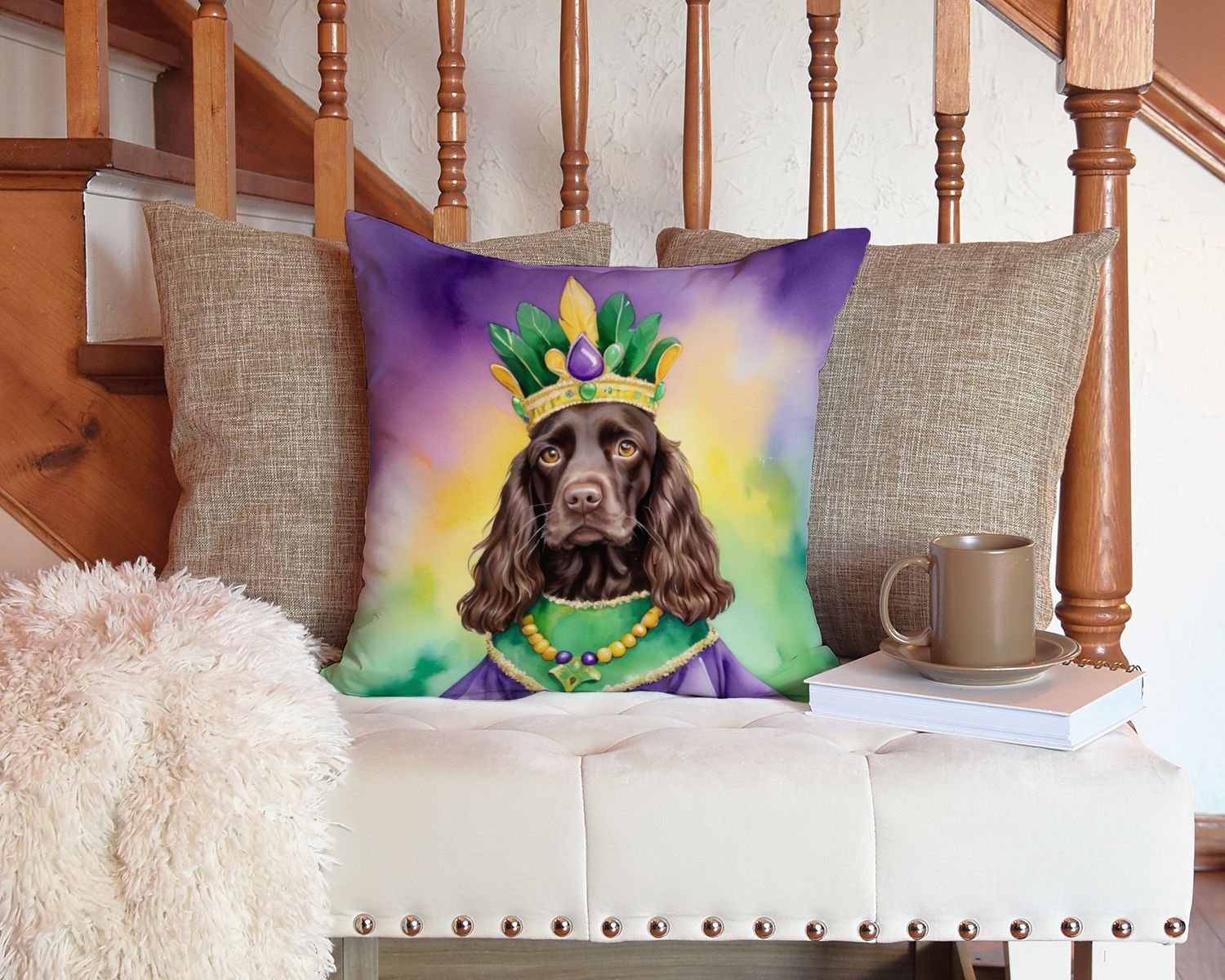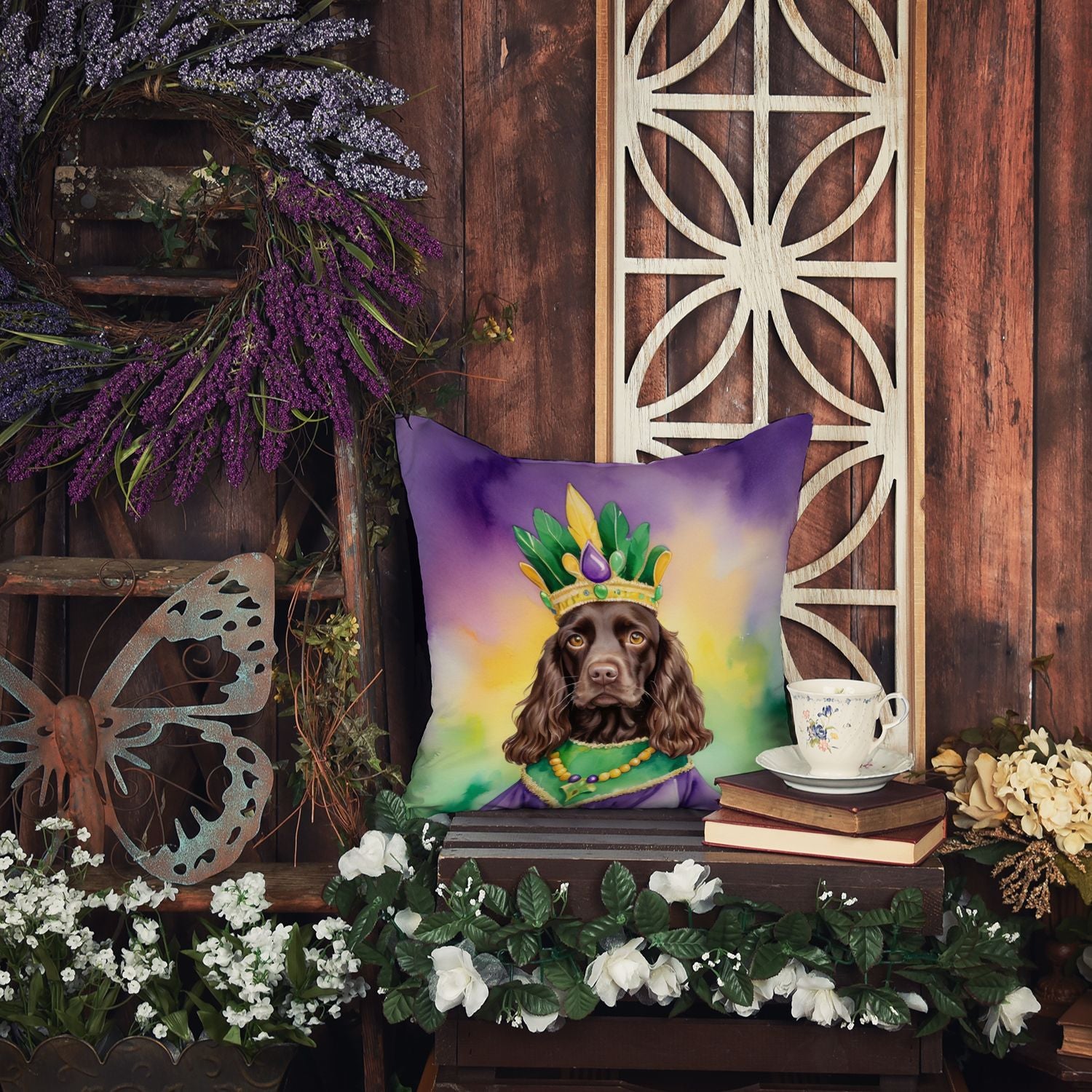 Boykin Spaniel King of Mardi Gras Throw Pillow Machine Washable, Indoor Outdoor Decorative Pillow for Couch, Bed or Patio, 14Hx14W