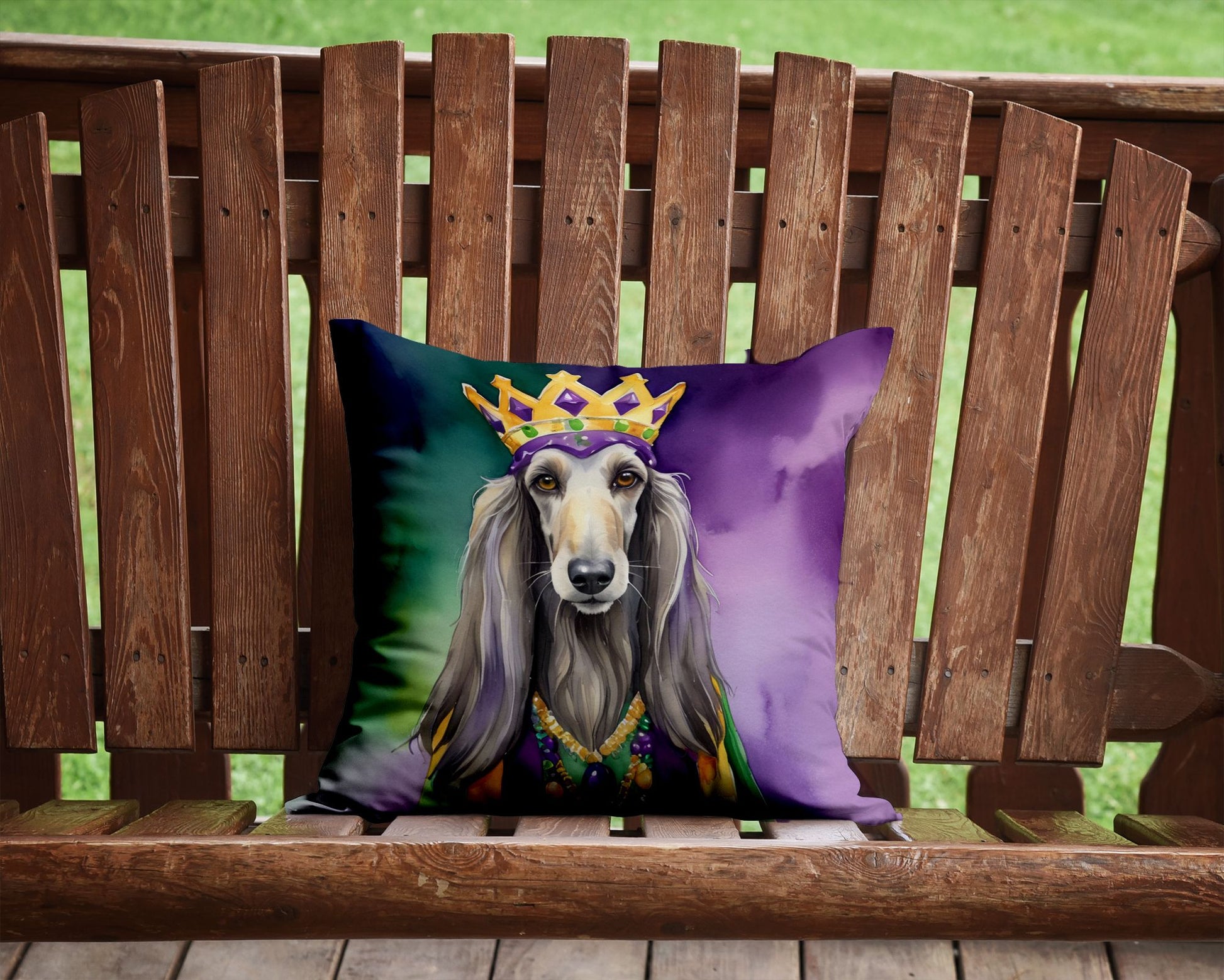Afghan Hound King of Mardi Gras Throw Pillow Machine Washable, Indoor Outdoor Decorative Pillow for Couch, Bed or Patio, 14Hx14W