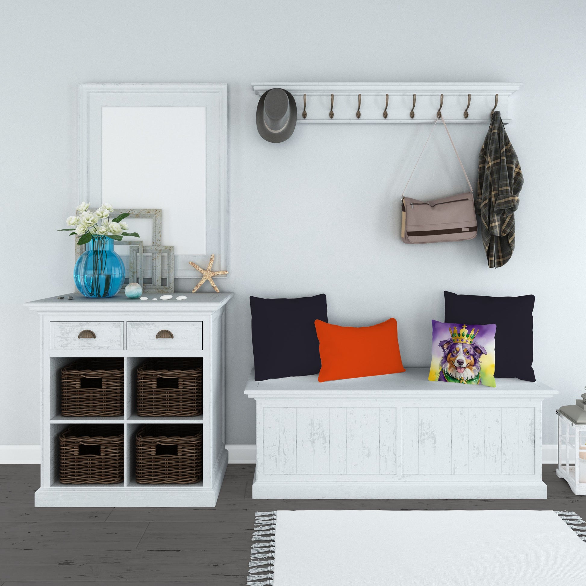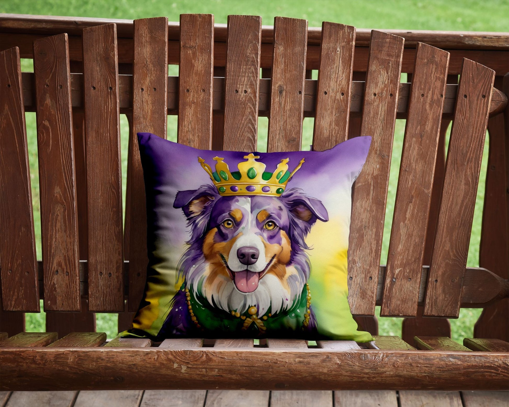 Australian Shepherd King of Mardi Gras Throw Pillow Machine Washable, Indoor Outdoor Decorative Pillow for Couch, Bed or Patio, 14Hx14W