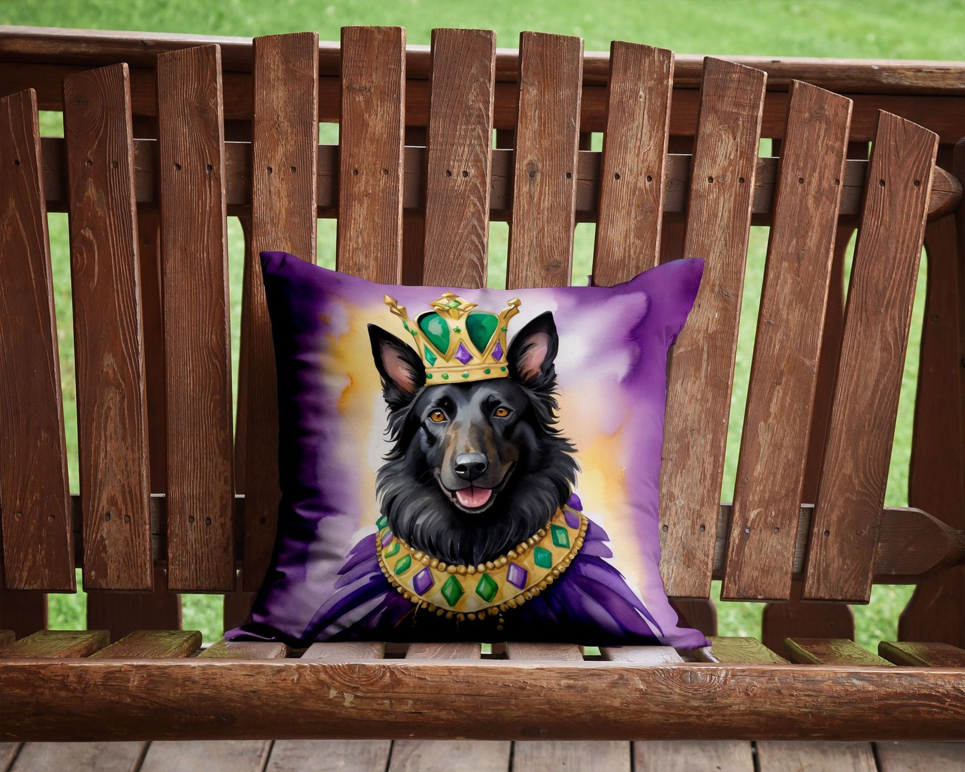 Throw Pillow featuring breed specific Belgian Sheepdog artwork. Celebrate Mardi Gras with this Mardi Gras Pillow. Add a touch of vibrancy and comfort to your outdoor seating with Caroline's Treasures Fabric Decorative Pillow. Measuring approximately 14 inches by 14 inches, this outdoor pillow is crafted to elevate the appeal of your patio furniture, infusing it with vivid color and artistic flair. The pillow includes a 100% Polyester Fabric sham filled with a quality pillow form to provide superior comfort. Innovatively made from our brand new material, specifically woven for its water resistance, this pillow is designed for durability. The soft canvas fabric offers versatility in use, fit for your indoor couch or your outdoor patio, porch, or veranda. The fabric is dyed with colorfast dyes built for resilience against weather conditions, ensuring the pillow retains its beauty over time. Constructed by sewing three fabric pieces to create a sham, the polyester insert is then nestled inside to form the pillow, resulting in an overstuffed pillow that maintains its shape. Both the sham and the pillow insert are proudly made in the United States. As the pillows are handcrafted, there may be minor variations in size, further enhancing their unique charm. Experience comfort in style with Caroline's Treasures Fabric Decorative Pillow.