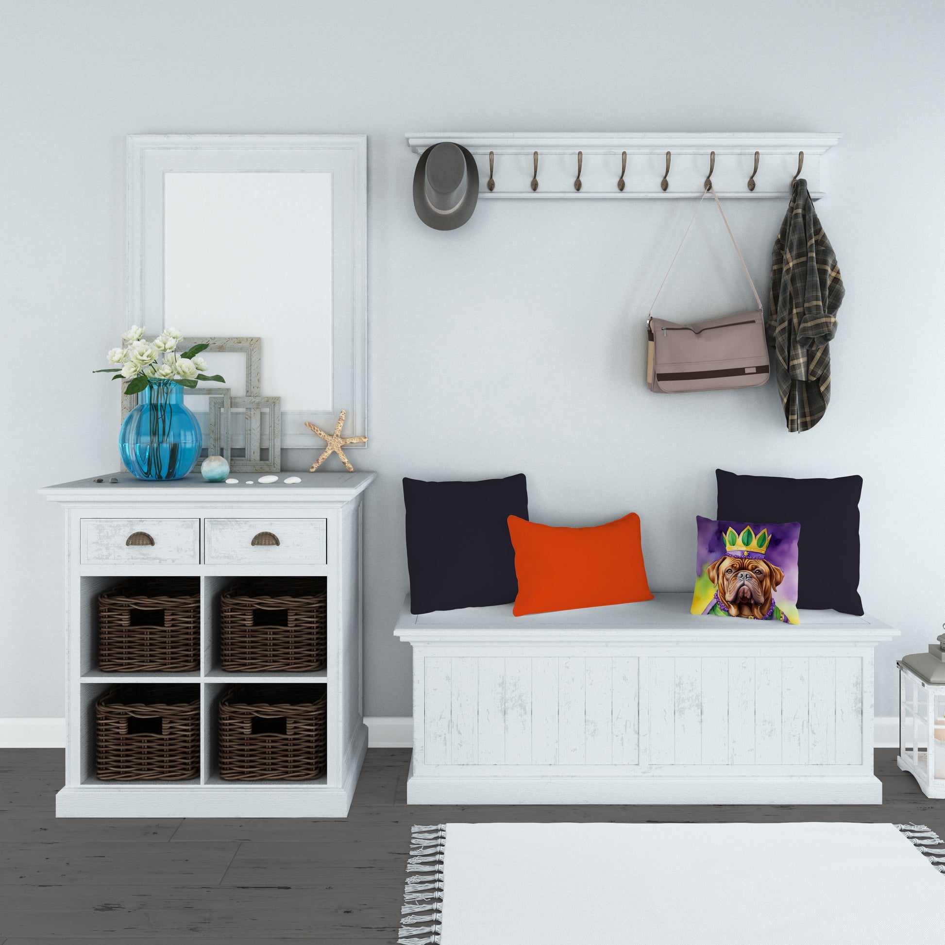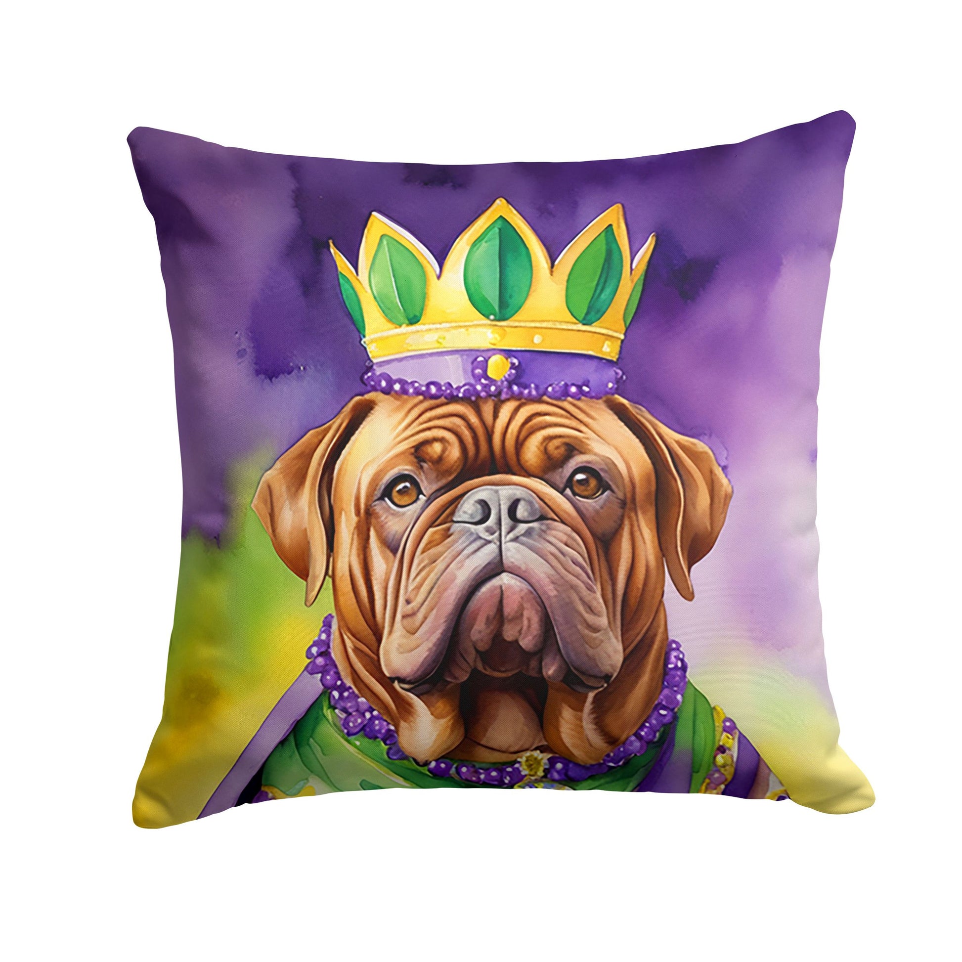 Dogue de Bordeaux King of Mardi Gras Throw Pillow Machine Washable, Indoor Outdoor Decorative Pillow for Couch, Bed or Patio, 14Hx14W