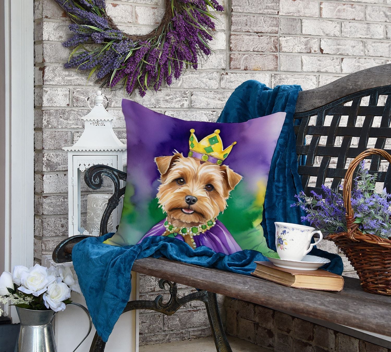 Norfolk Terrier King of Mardi Gras Throw Pillow Machine Washable, Indoor Outdoor Decorative Pillow for Couch, Bed or Patio, 18Hx18W