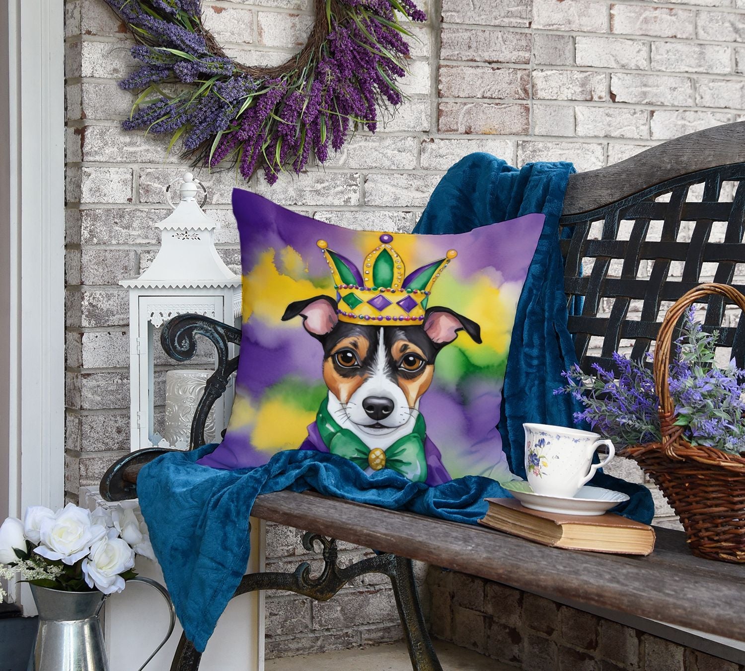 Jack Russell Terrier King of Mardi Gras Throw Pillow Machine Washable, Indoor Outdoor Decorative Pillow for Couch, Bed or Patio, 18Hx18W