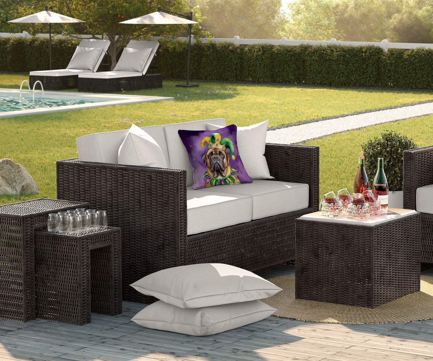 Throw Pillow featuring breed specific Mastiff artwork. Celebrate Mardi Gras with this Mardi Gras Pillow. Revitalize your outdoor or indoor living space with Caroline's Treasures 18x18 Fabric Decorative Pillow. With a generously sized dimension of approximately 18 inches by 18 inches, this pillow makes a comfortable and aesthetic addition to any seating area. Made from a unique, water-resistant material developed by Caroline's Treasures, the pillow sham is 100% polyester fabric that's durable and ready to weather any condition. Its vibrant, full-color artwork will not fade over time as it is dyed with color-fast dyes. Whether you place it on your patio furniture, porch, veranda, or indoor couch, its soft canvas fabric ensures a cozy experience. The pillow is handcrafted in the United States, featuring a sham created from three pieces of fabric and a polyester insert for enduring shape and overstuffed comfort. Despite being robustly built to endure the outdoors, it is as soft and snug as your favorite indoor cushions. Please note, as all our pillows are handmade, sizes may vary slightly, adding to the charm of this unique decorative item.