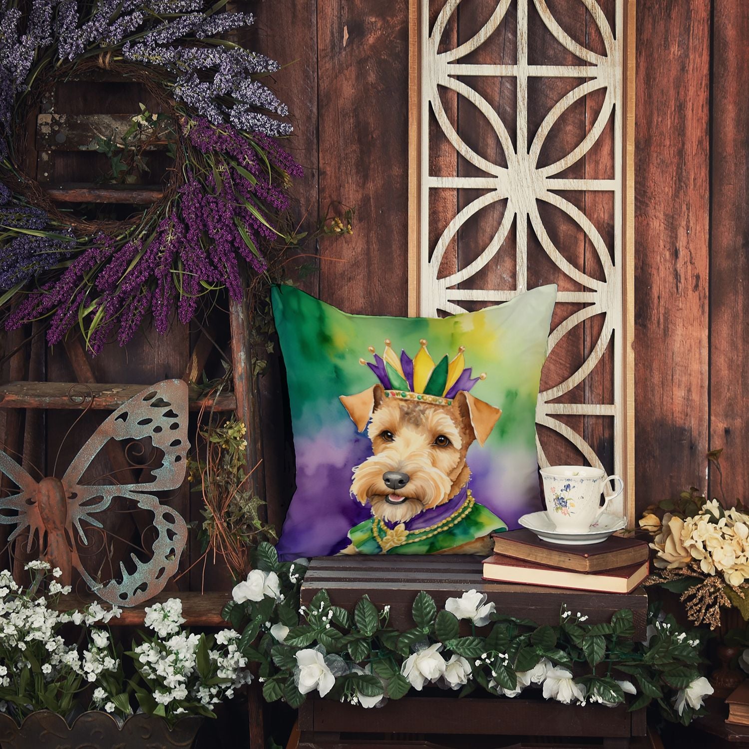 Throw Pillow featuring breed specific Lakeland Terrier artwork. Celebrate Mardi Gras with this Mardi Gras Pillow. Revitalize your outdoor or indoor living space with Caroline's Treasures 18x18 Fabric Decorative Pillow. With a generously sized dimension of approximately 18 inches by 18 inches, this pillow makes a comfortable and aesthetic addition to any seating area. Made from a unique, water-resistant material developed by Caroline's Treasures, the pillow sham is 100% polyester fabric that's durable and ready to weather any condition. Its vibrant, full-color artwork will not fade over time as it is dyed with color-fast dyes. Whether you place it on your patio furniture, porch, veranda, or indoor couch, its soft canvas fabric ensures a cozy experience. The pillow is handcrafted in the United States, featuring a sham created from three pieces of fabric and a polyester insert for enduring shape and overstuffed comfort. Despite being robustly built to endure the outdoors, it is as soft and snug as your favorite indoor cushions. Please note, as all our pillows are handmade, sizes may vary slightly, adding to the charm of this unique decorative item.